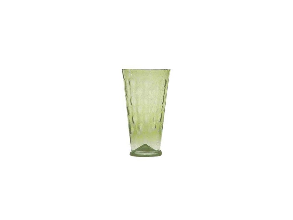 - Číše ze zeleného skla s optickým dekorem čoček, se výborně hodí na mnoho osvěžujících nápojů.