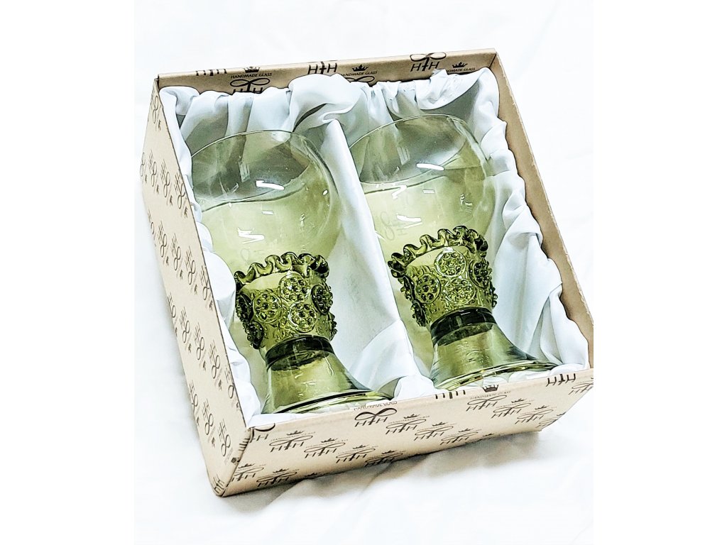 - Hojně oblíbená replika číše Roemer ze zeleného skla vyrobená podle originálů ze 17. století německých a Lübeckých mistrů.