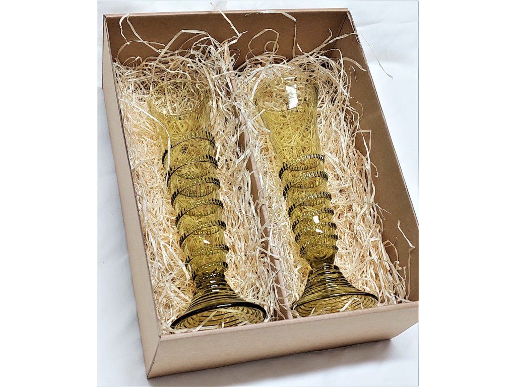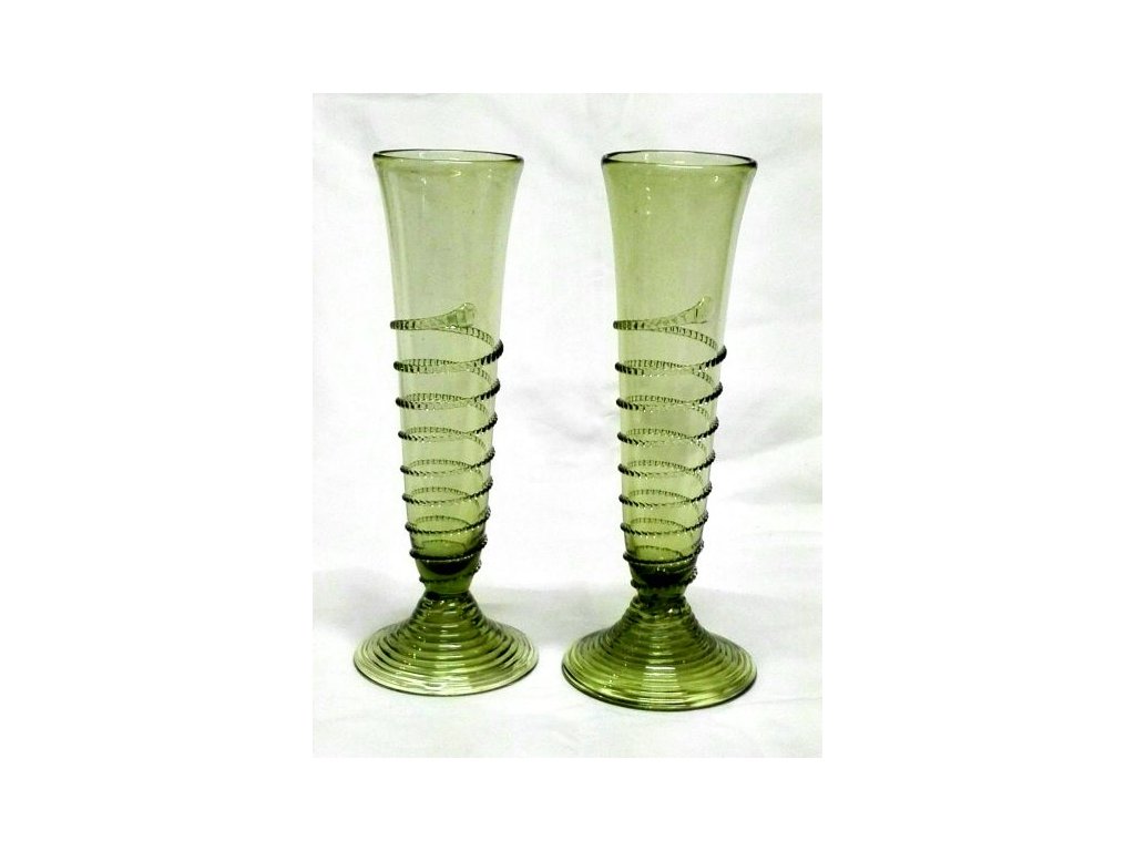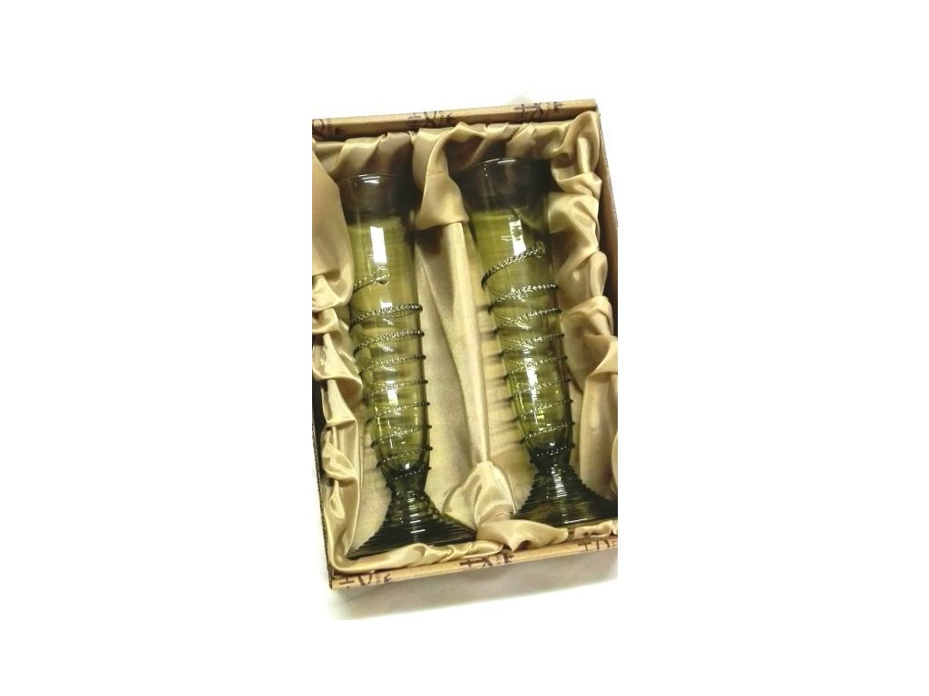 - Šampuska ze zeleného skla s dekorativní, rádlovanou spirálou - sada 2 ks.